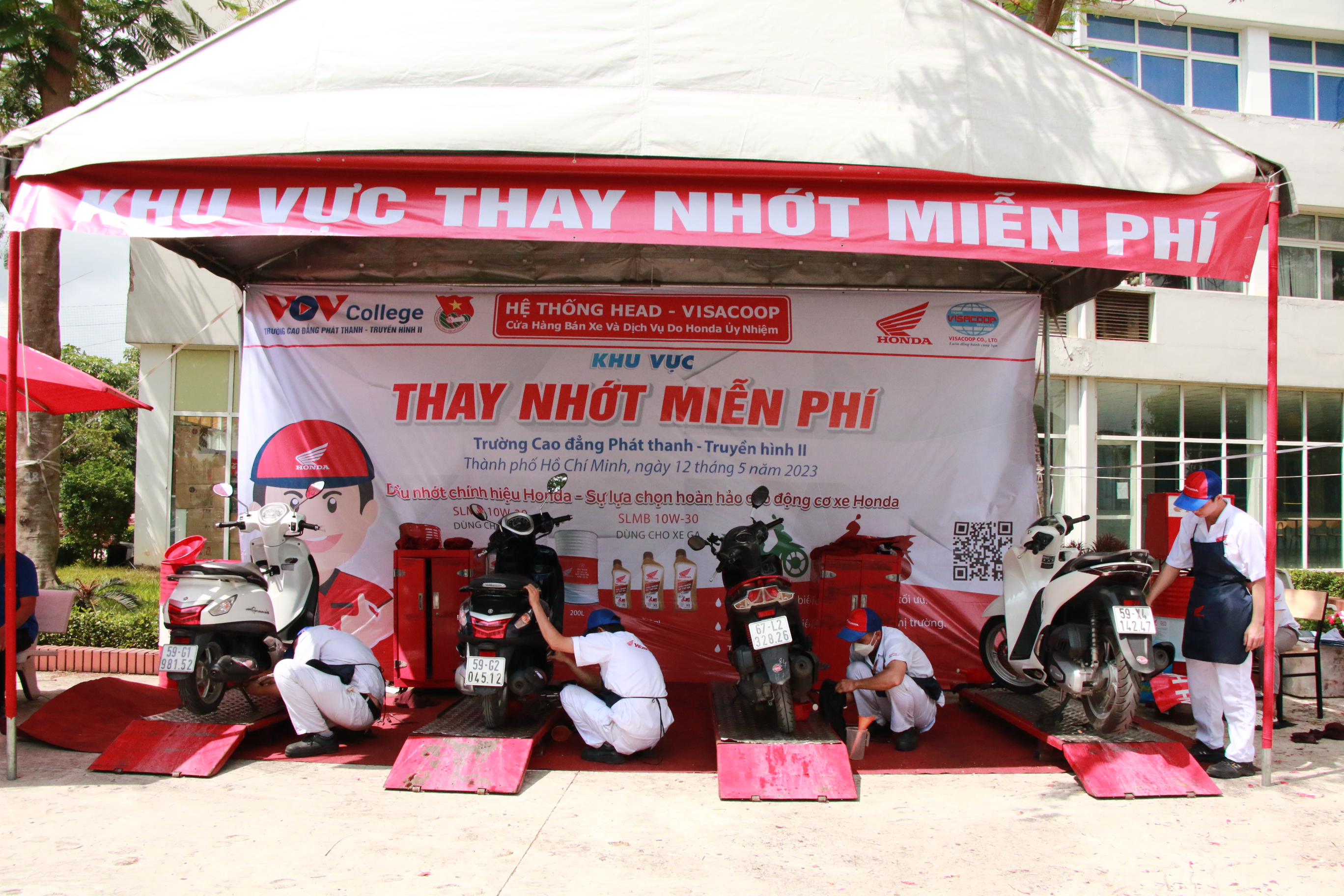 Đồng thời, chương trình có gian hàng triển lãm các mặt hàng phụ tùng xe máy, kiểm tra xe và thay nhớt miễn phí cho Đoàn viên thanh niên.