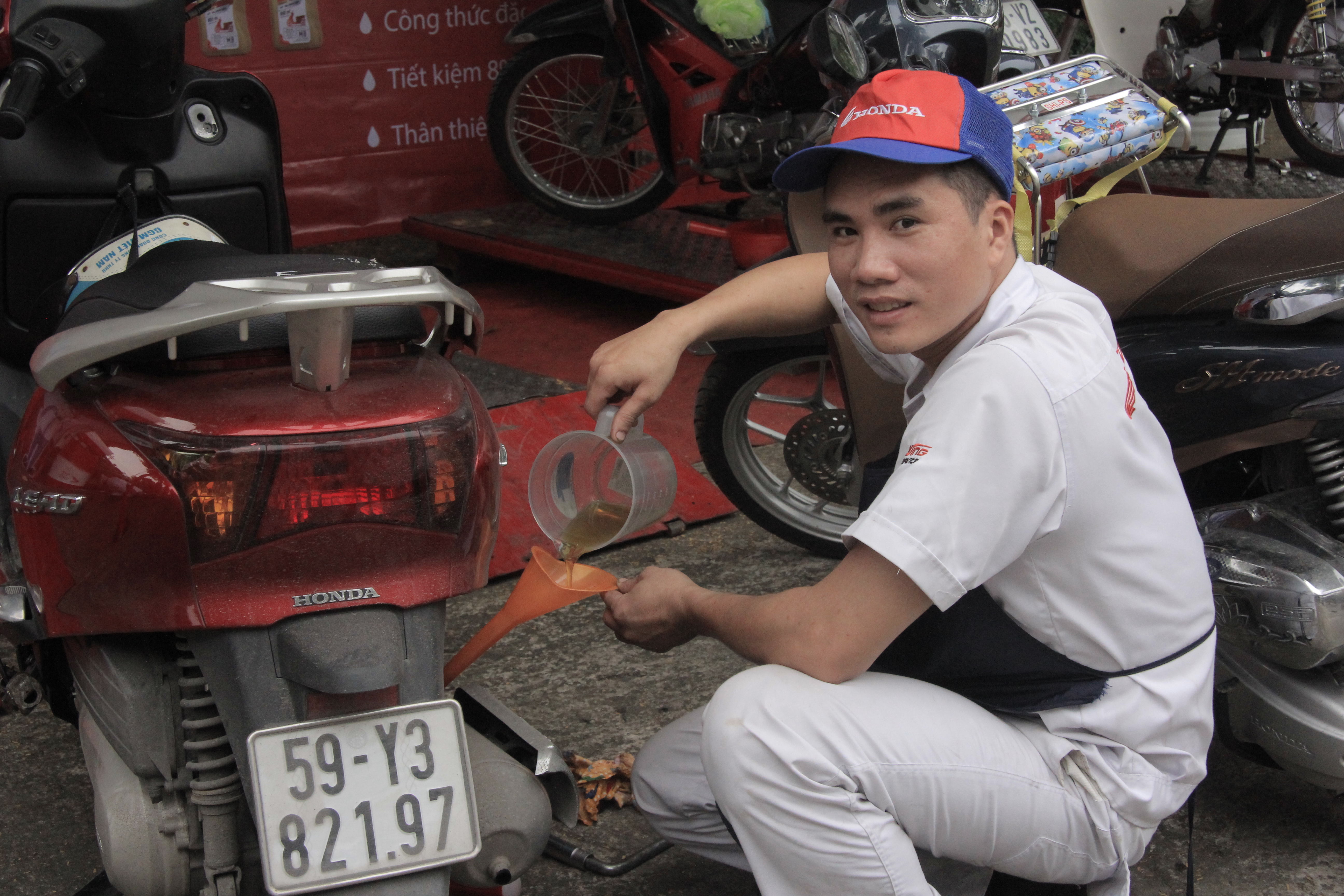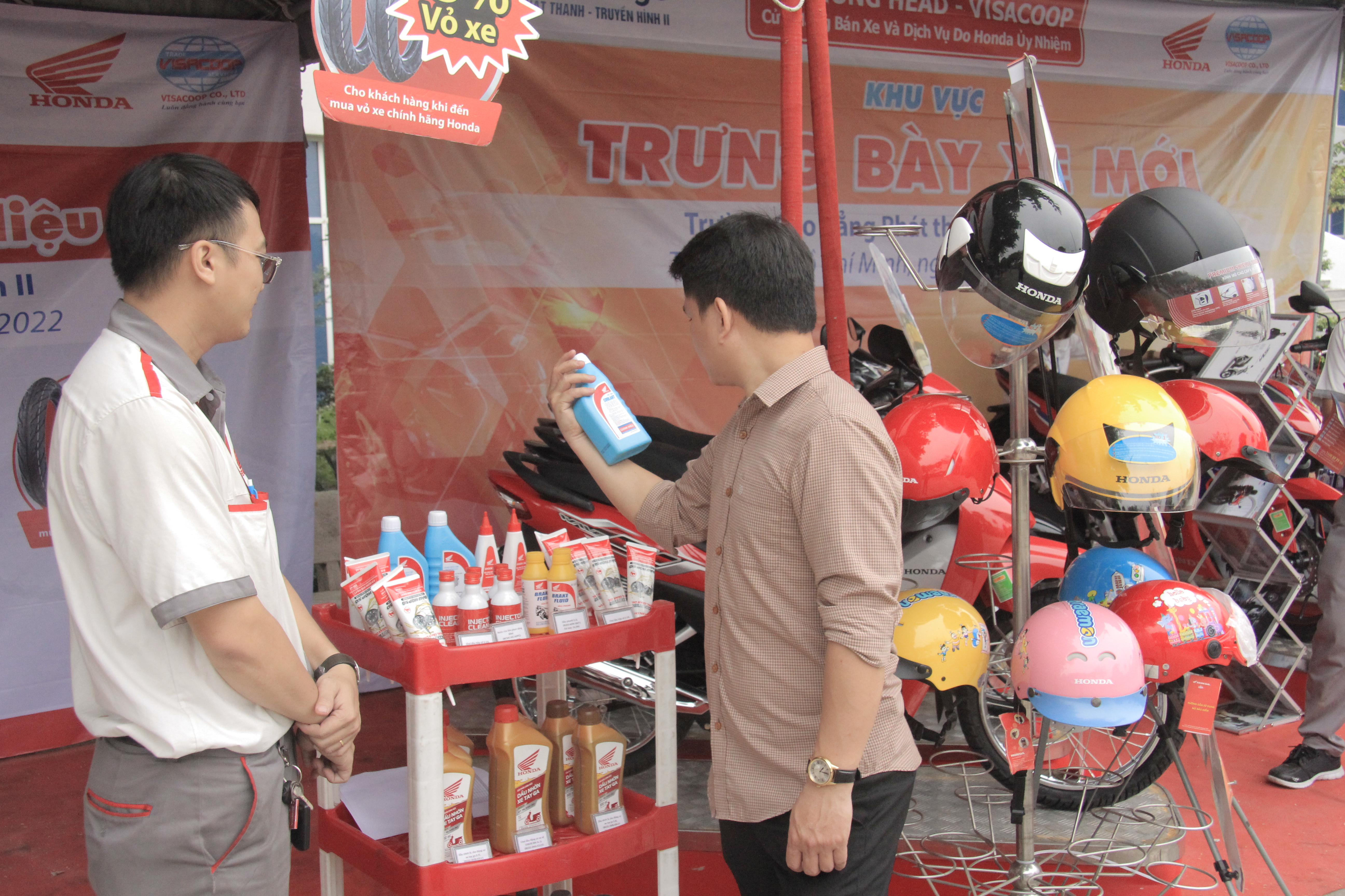 Đồng thời, chương trình có gian hàng triển lãm các mặt hàng phụ tùng xe máy và Đoàn viên thanh niên được kiểm tra xe và thay nhớt miễn phí hoàn toàn.