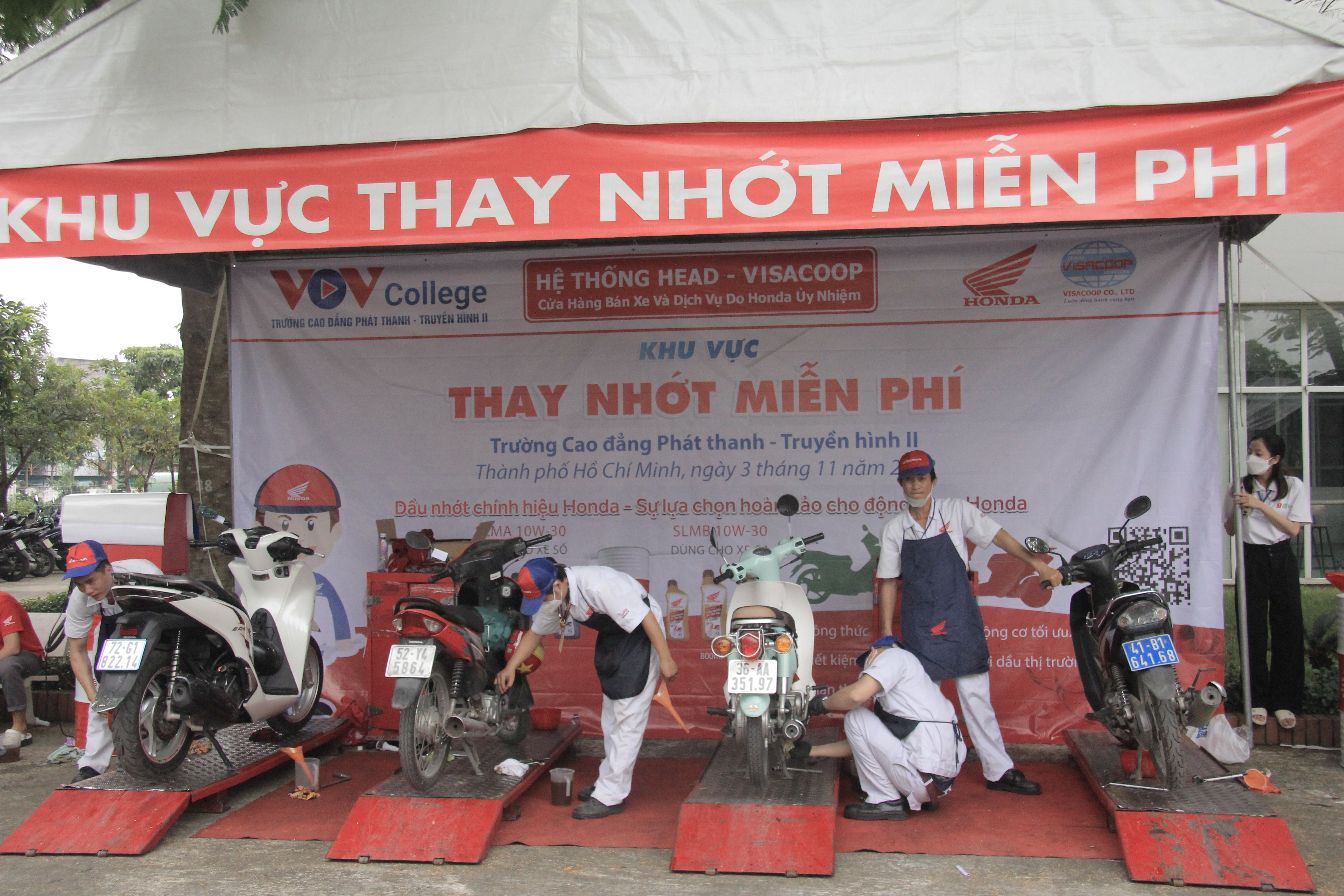 Xe máy của các bạn sinh viên được thay hớt hoàn toàn miễn phí.
