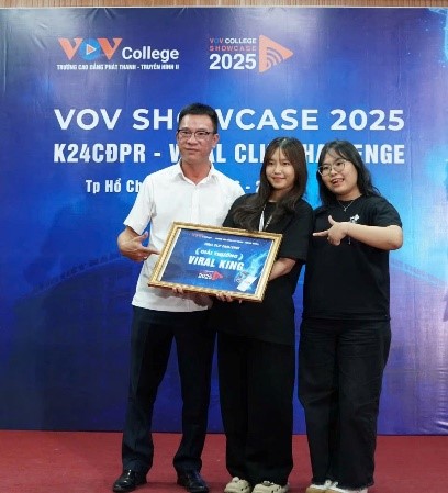 Ngày 28/06 vừa qua, tại Hội trường lớn Trường Cao đẳng Phát thanh - Truyền hình II (VOV College), Gala Tổng kết và Trao giải Cuộc thi Sáng tạo clip ngắn “VOV College Showcase 2025: K24CĐPR - Viral Clip Challenge” đã diễn ra thành công tốt đẹp, để lại nhiều ấn tượng sâu sắc về sức sáng tạo và bản lĩnh của sinh viên ngành Quan hệ Công chúng.