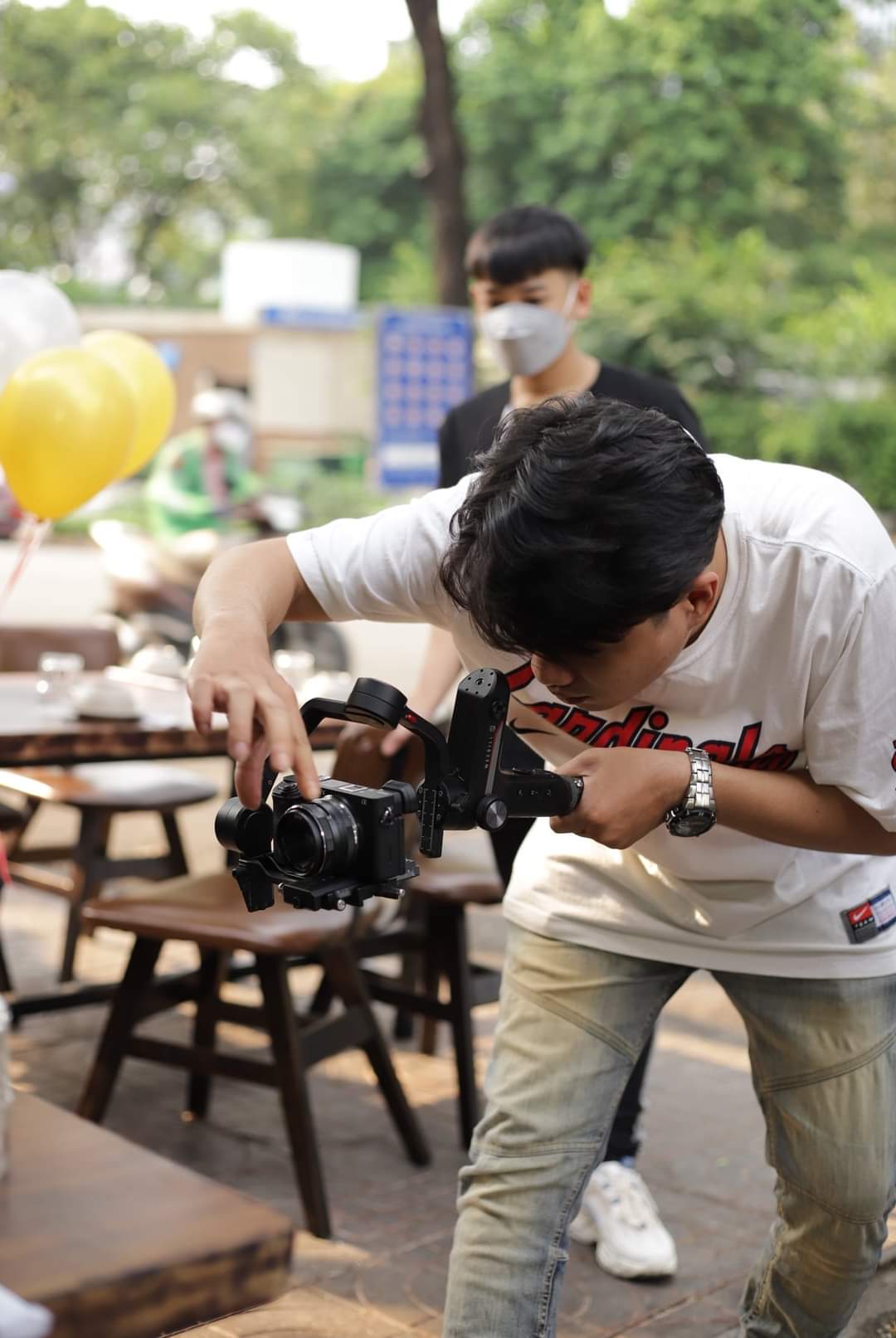 Hoàng Thiện đang tác nghiệp trong một chương trình.