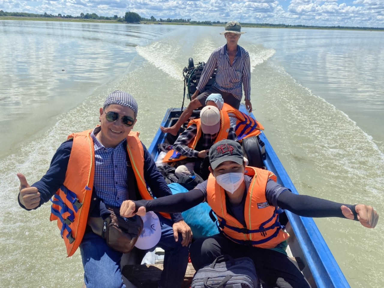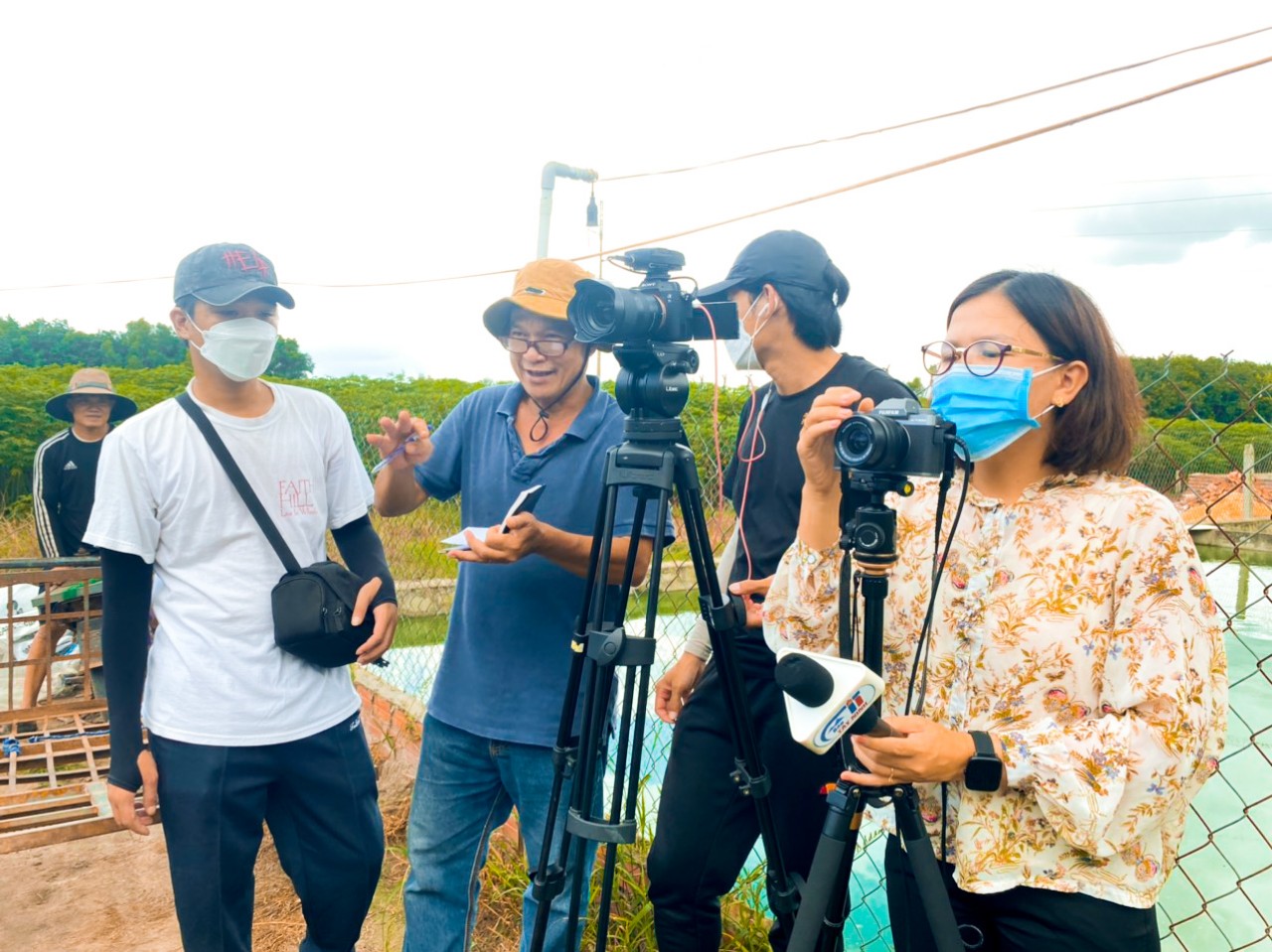 Hoàng Thiện (Ngoài cùng bên trái) đang làm việc cùng ê-kip phóng sự báo Tây Ninh