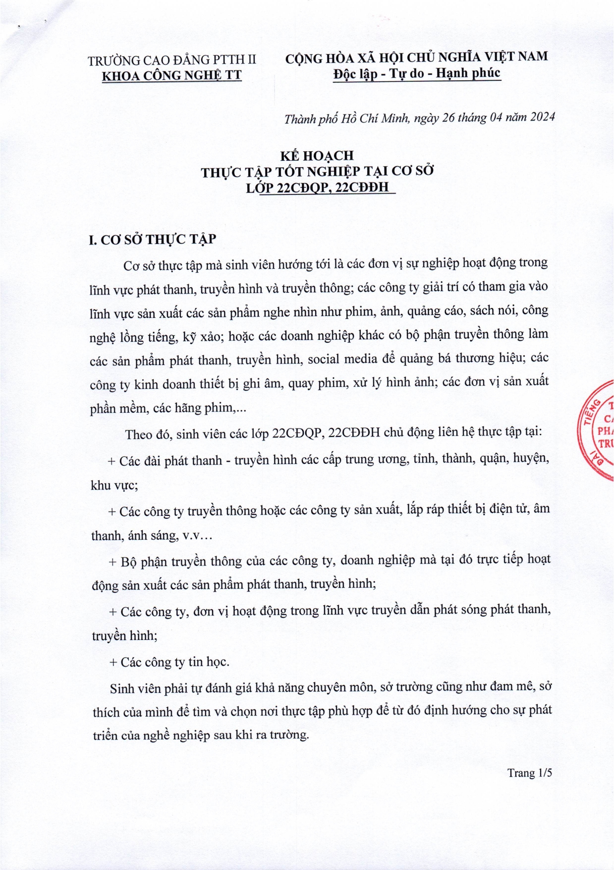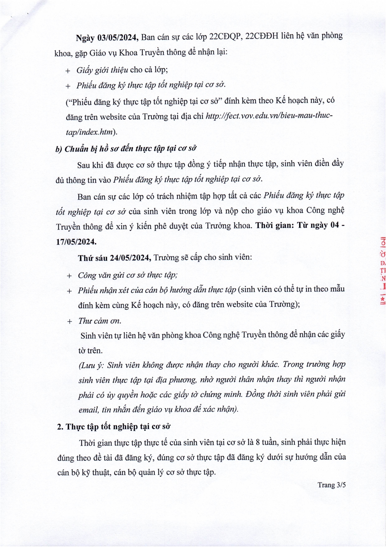 Kế hoạch thực tập tốt nghiệp tại cơ sở lớp 23CĐĐH, 23CĐQP