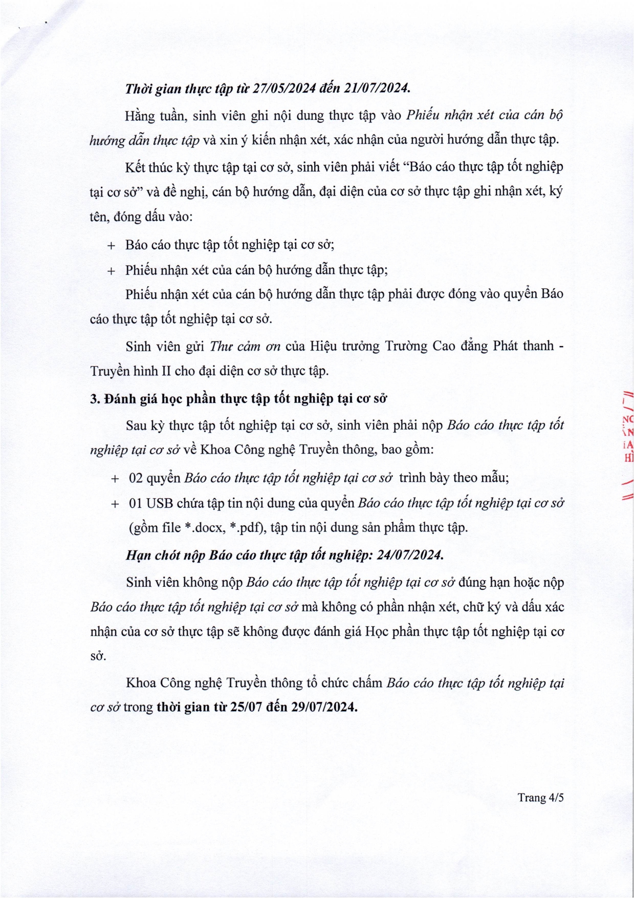Kế hoạch thực tập tốt nghiệp tại cơ sở