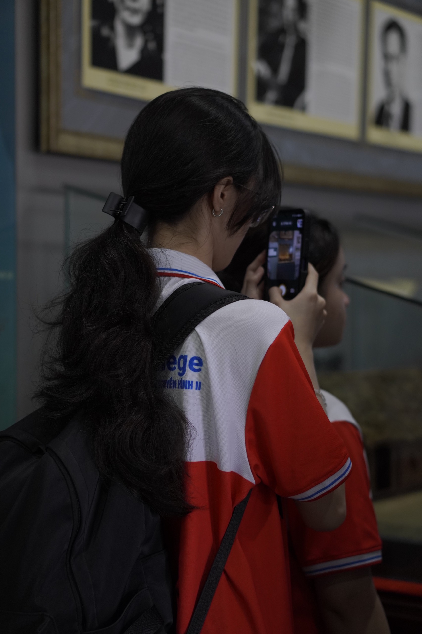 Một sinh viên đang chụp lại ảnh hiện vật ở Bảo tàng.