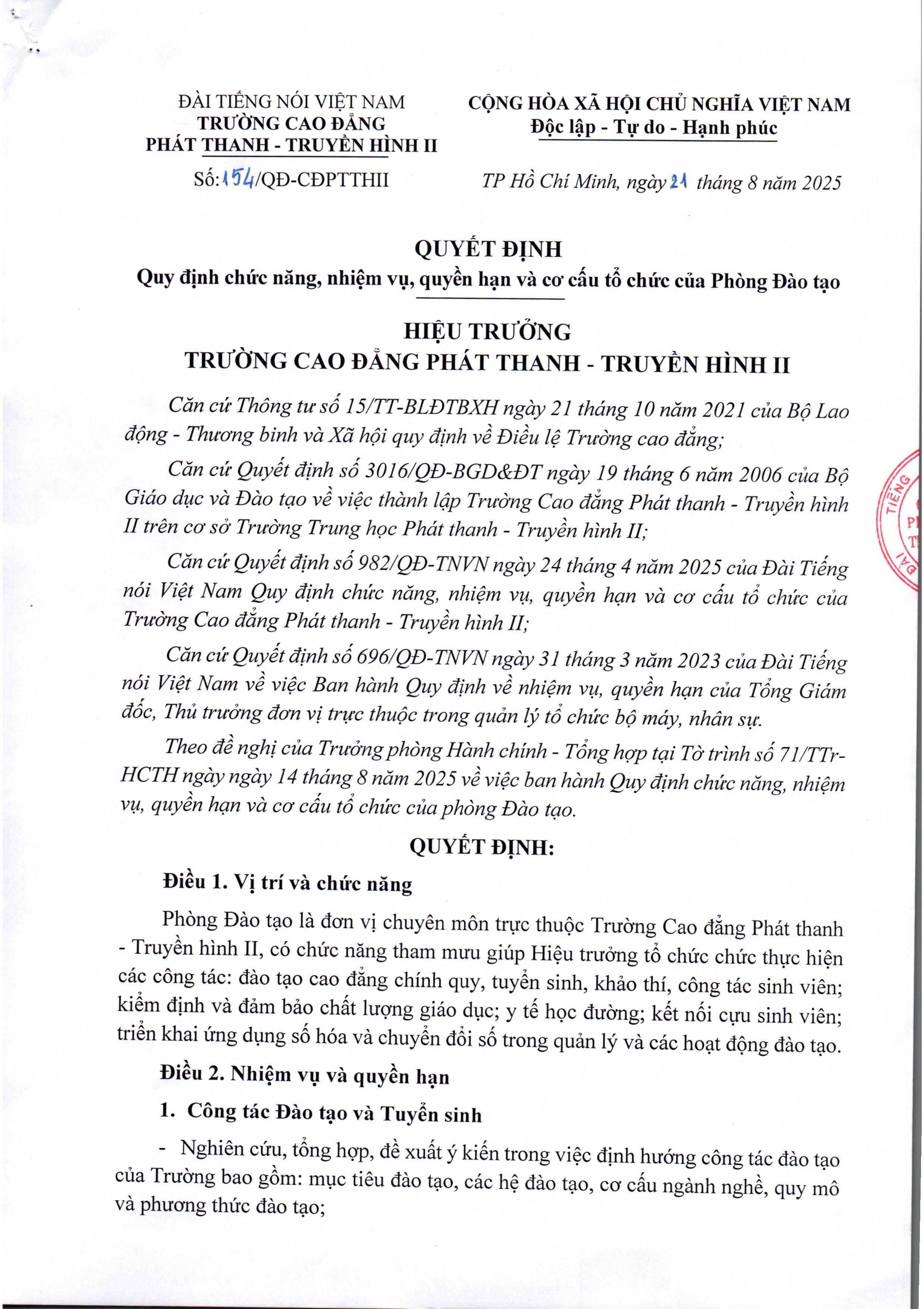 CHỨC NĂNG, NHIỆM VỤ, QUYỀN HẠN VÀ CƠ CẤU TỔ CHỨC PHÒNG QUẢN LÝ ĐÀO TẠO (Tải về)