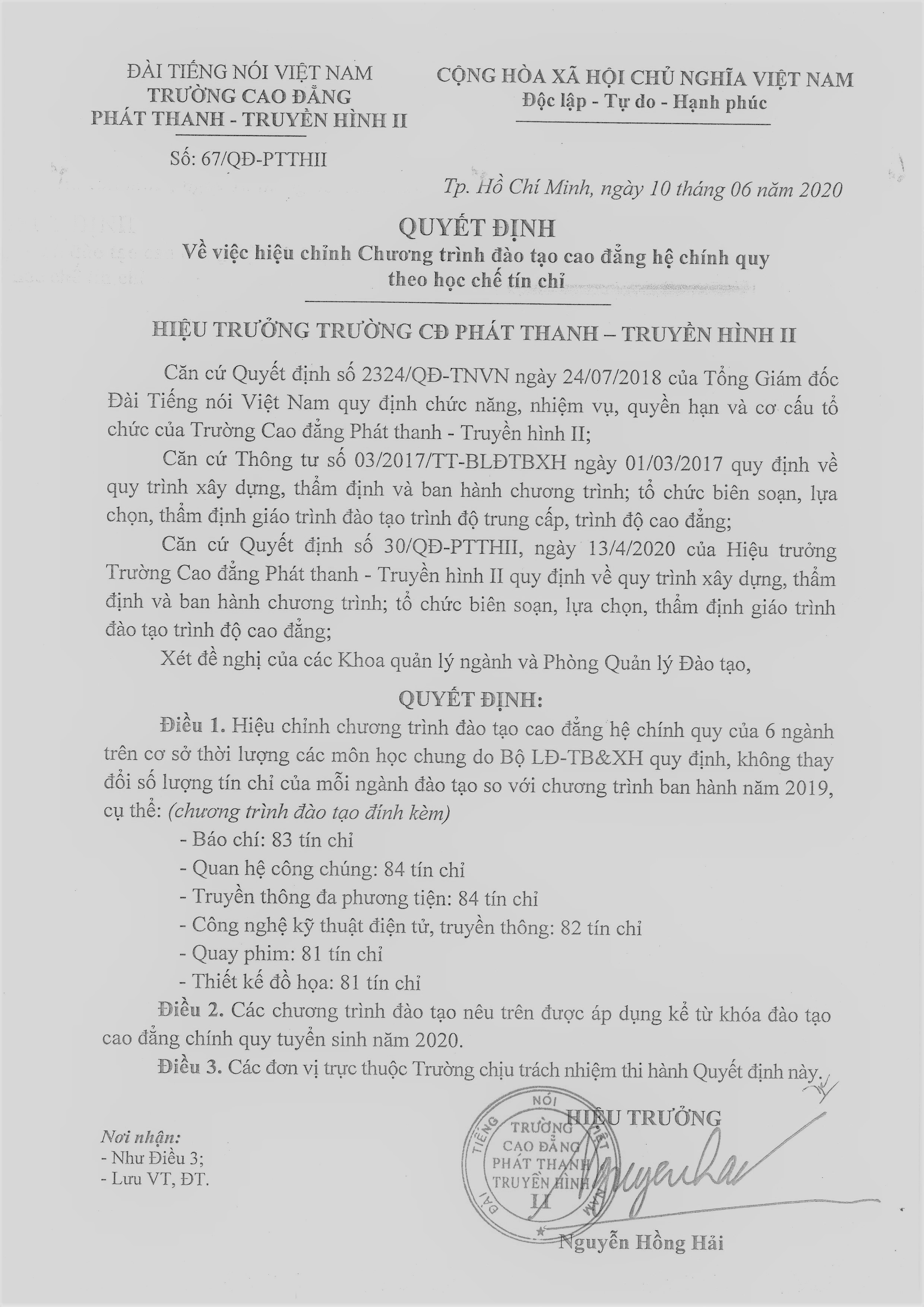 Quyết định ban hành Chương trình đào tạo năm 2020