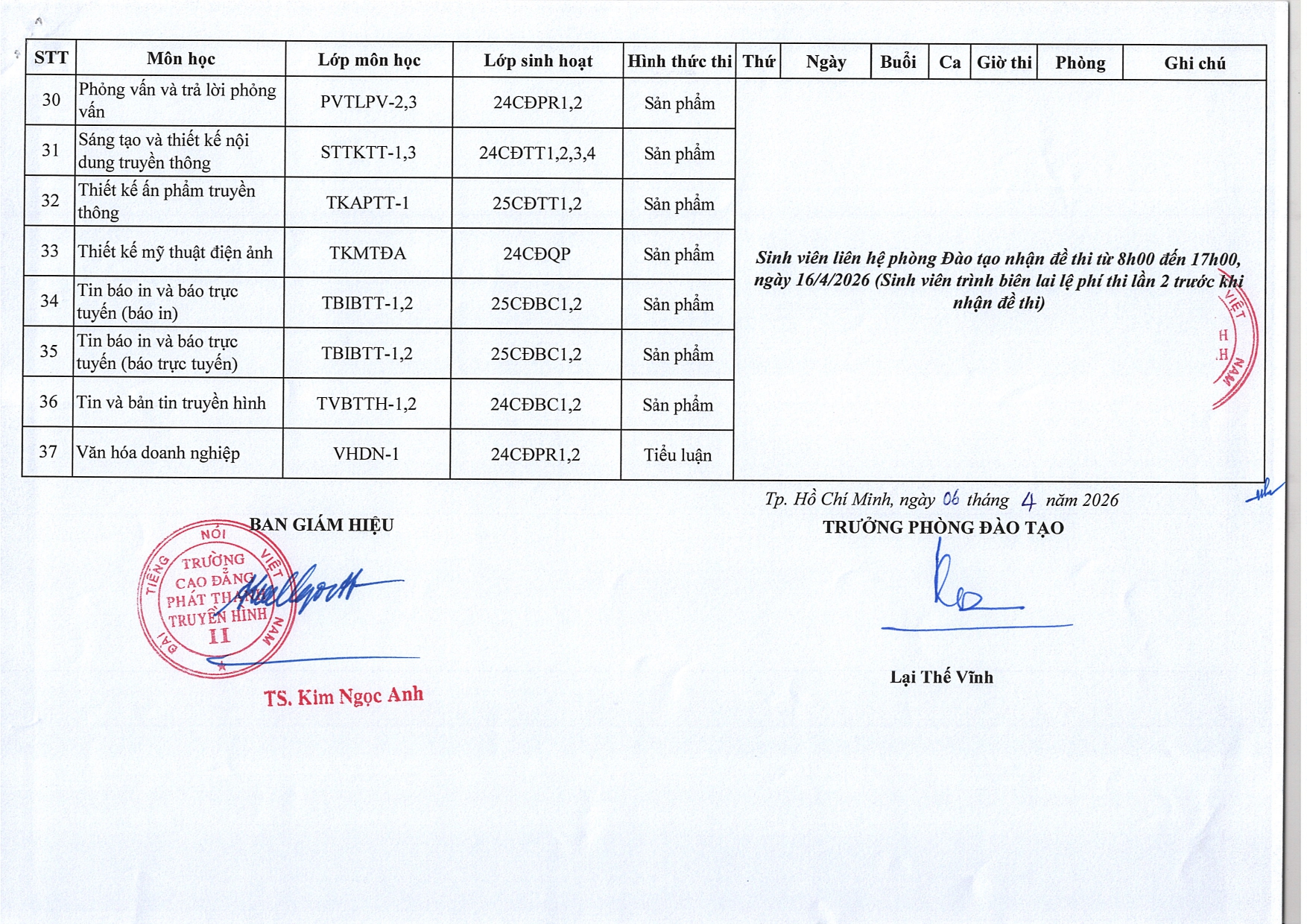 Danh sách thi lần 2, học kỳ 1, năm học 2025-2026 (Tải về)