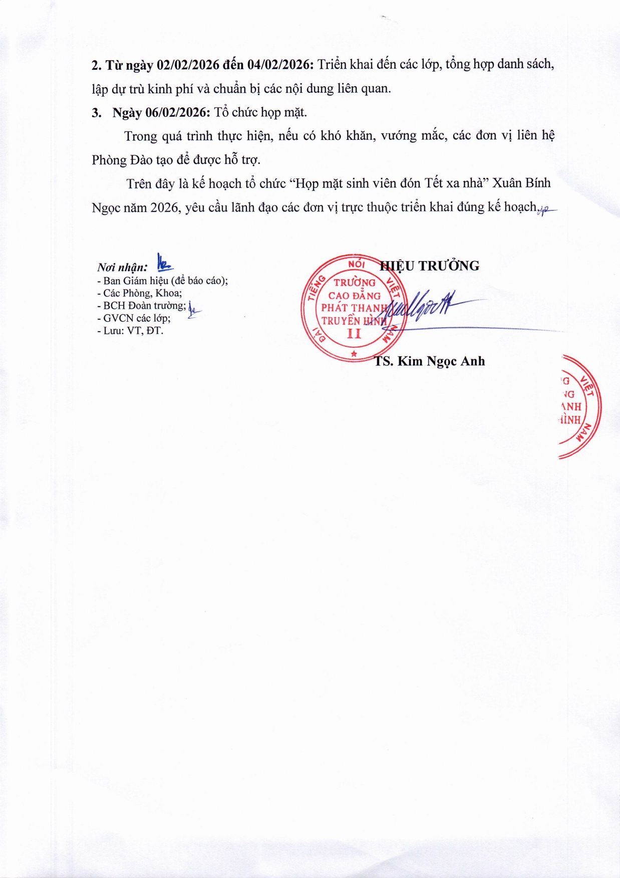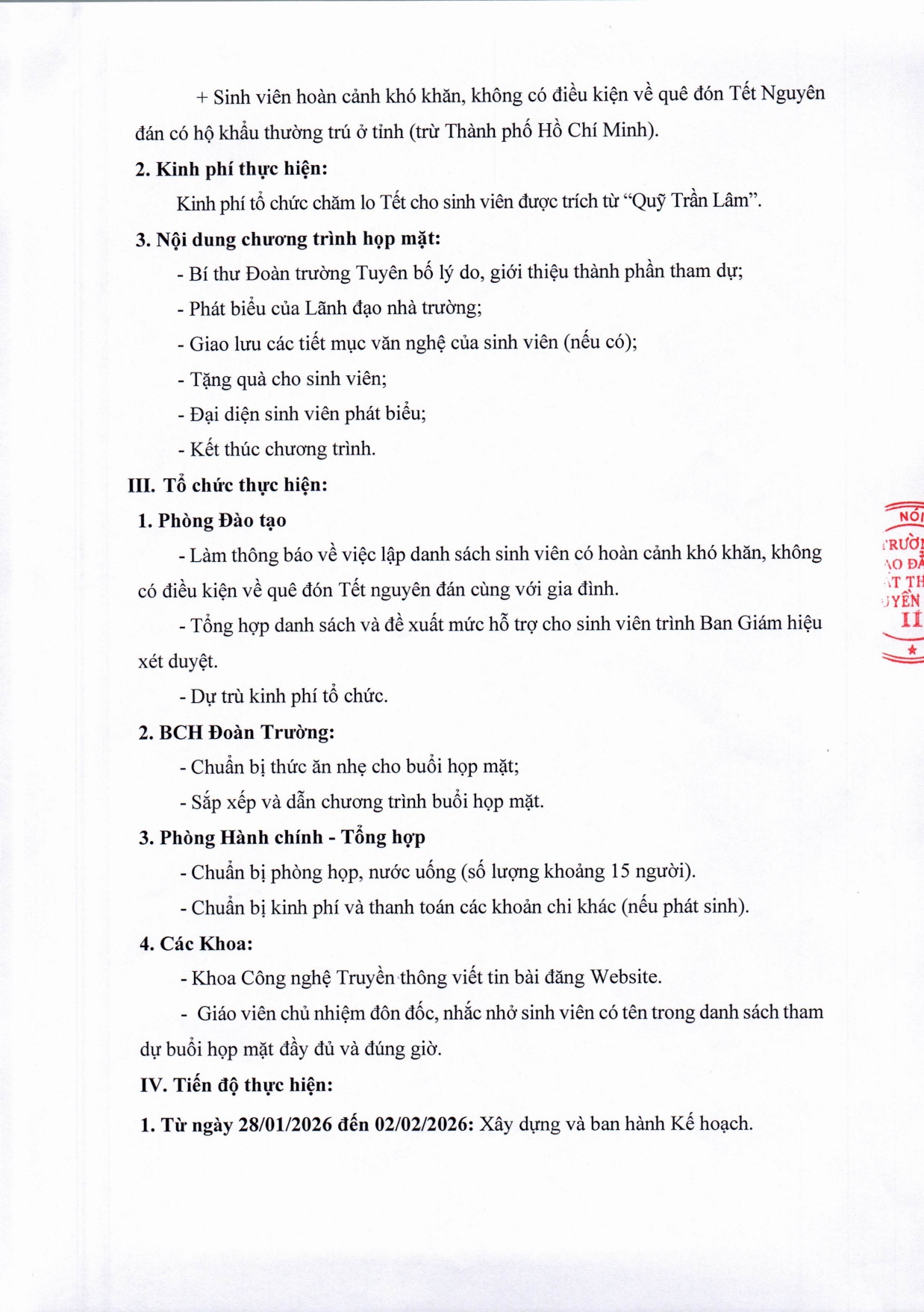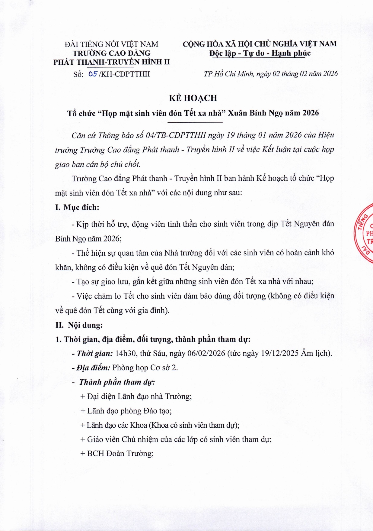 Kế hoạch tổ chức “Họp mặt sinh viên đón Tết xa nhà” Xuân Bính Ngọ năm 2026