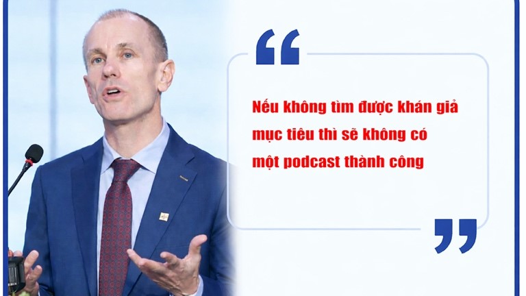 “Hiện nay, công chúng nghe podcast trên mọi nền tảng. Đặc biệt là các thính giả trẻ. Họ không có xu hướng nghe radio nên thường sử dụng podcast. Do đó, trong thời gian tới, podcast sẽ trở thành một hình thức báo chí phổ biến”, ông Andrew Davies nhấn mạnh.