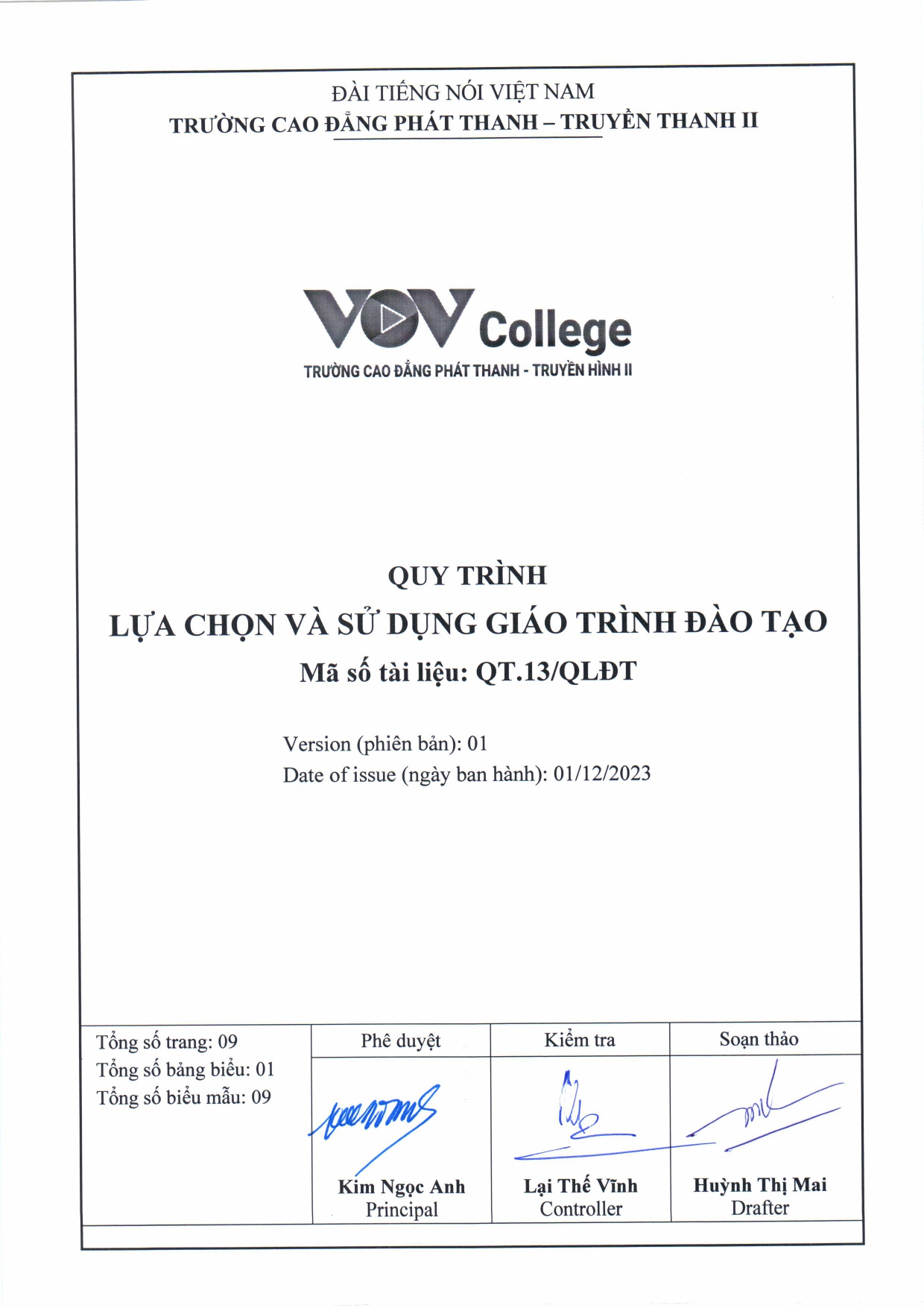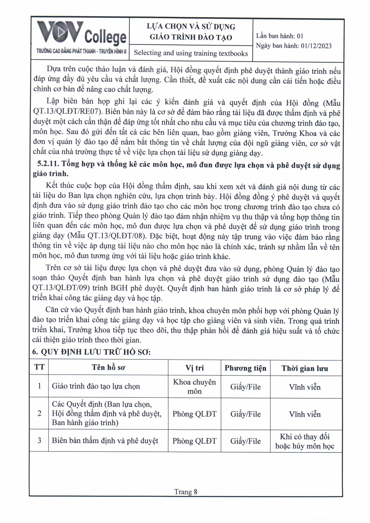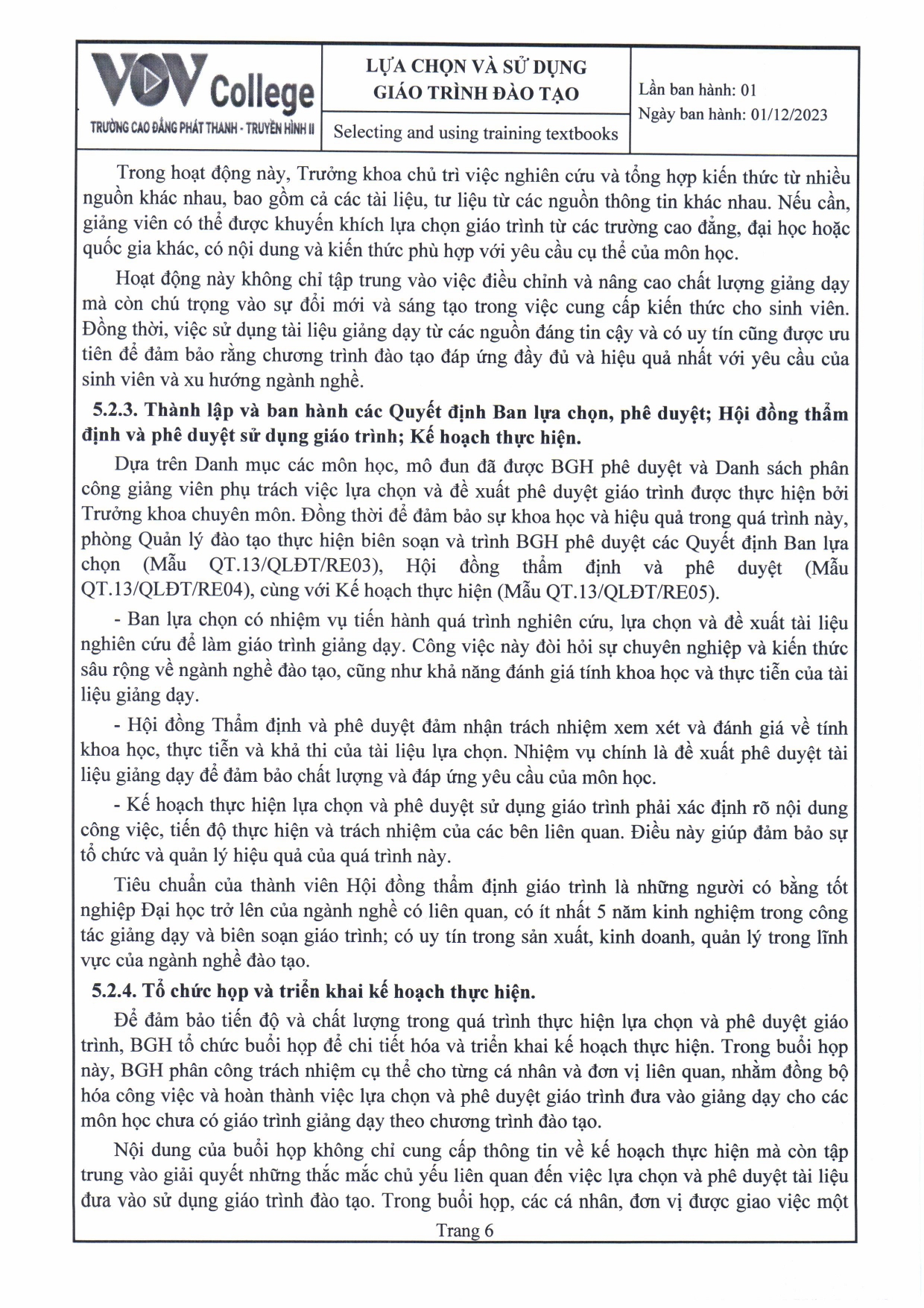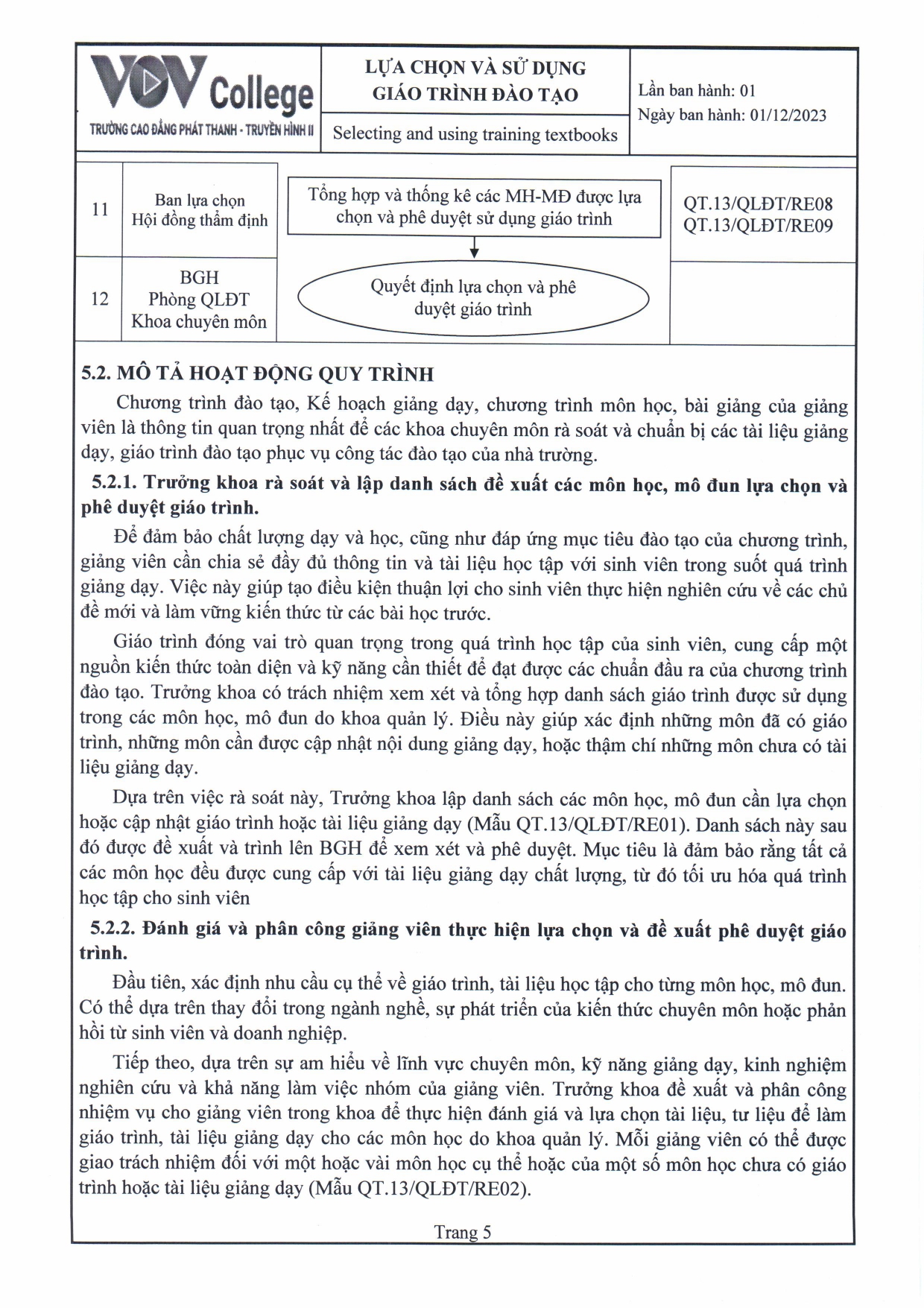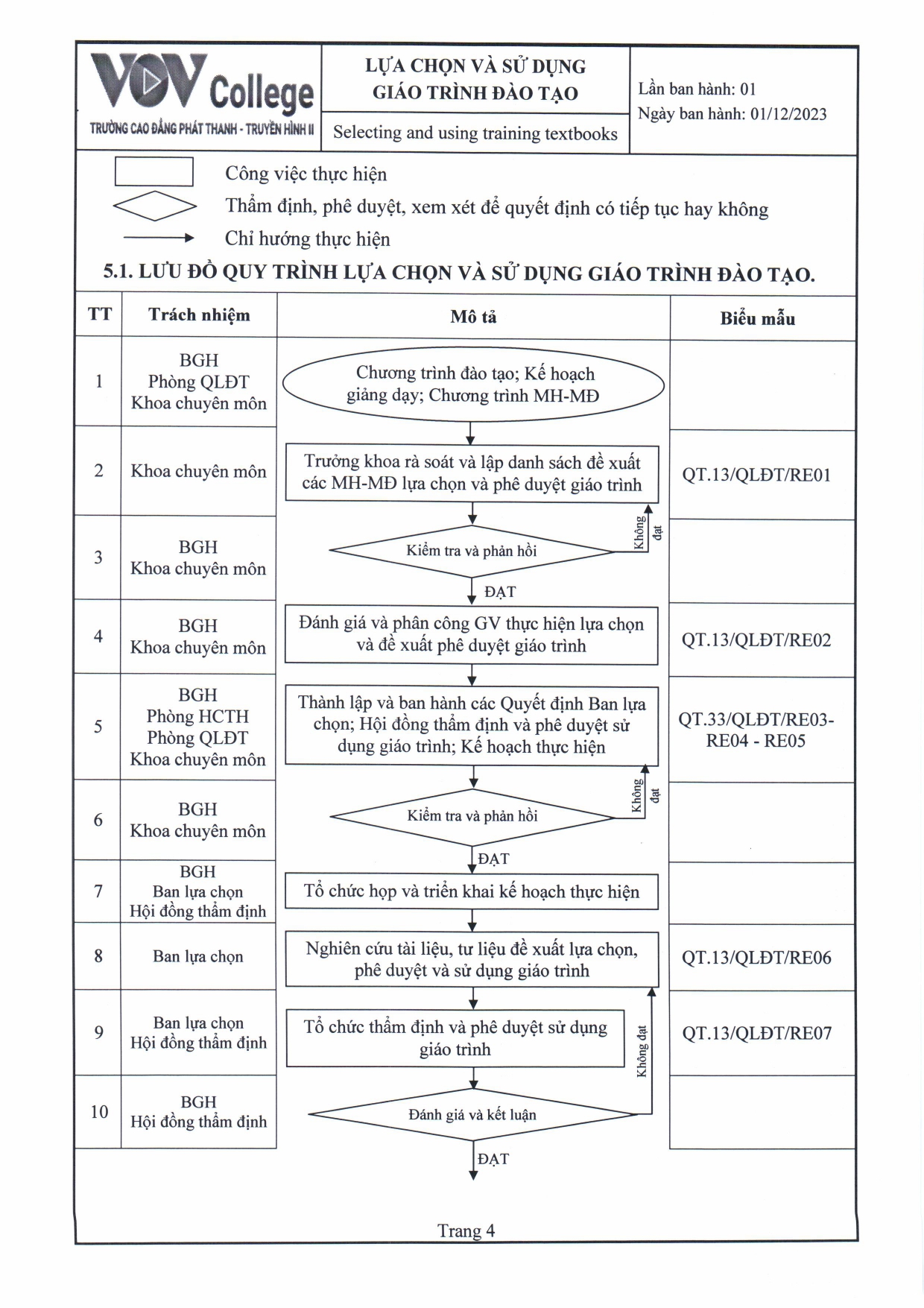 Quy trình lựa chọn và sử dụng giáo trình đào tạo (Tải về)