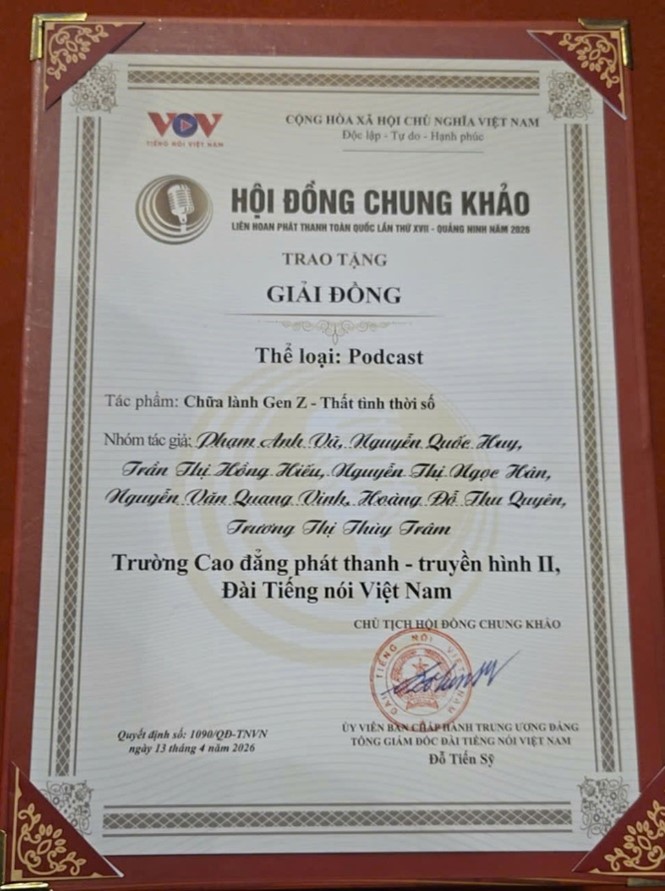 Giữa không gian kỳ vĩ của vùng di sản Hạ Long, tại kỳ Liên hoan Phát thanh Toàn quốc lần thứ XVII – 2026, cái tên VOV College một lần nữa được xướng lên đầy tự hào. Giải Đồng cho series Podcast "Chữa lành Gen Z: Thất tình thời số" là lời khẳng định mạnh mẽ: Tại ngôi trường này, sinh viên học để làm và chinh phục nghề nghiệp ngay khi còn ngồi trên ghế nhà trường.