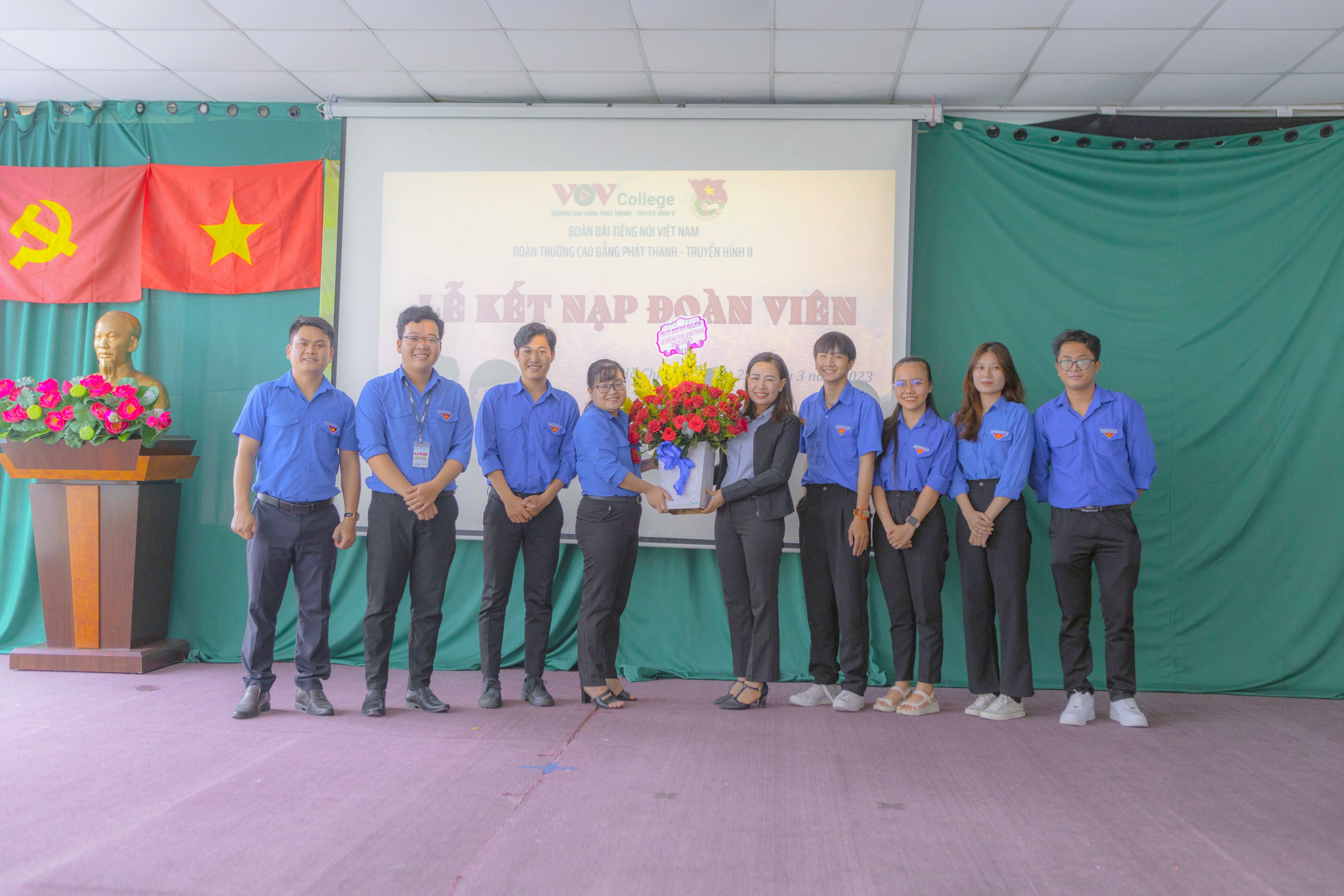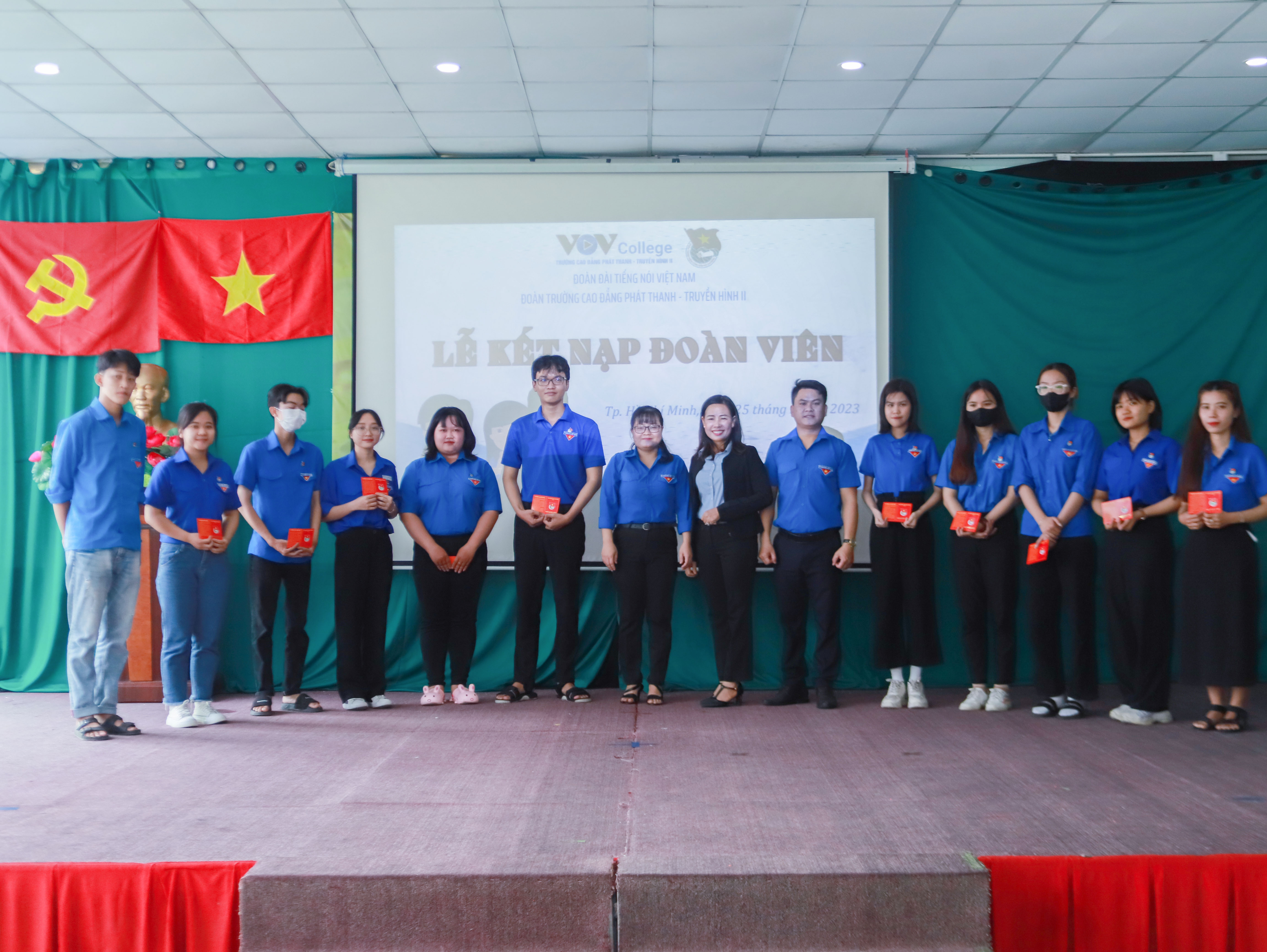 Cũng trong sáng 25/3/2023, Đoàn trường đã tổ chức Lễ kết nạp Đoàn viên mới cho 13 thanh niên ưu tú tham gia năng nổ các hoạt động của Đoàn. Được vinh dự đứng trong hàng ngũ của Đoàn, mang trên ngực áo là huy hiệu Đoàn, với ý chí và quyết tâm của tuổi trẻ luôn tràn đầy nhiệt huyết, các bạn sẽ là lớp đoàn viên tiếp tục phát huy truyền thống của tổ chức Đoàn nói chung và tuổi trẻ trường Cao đẳng Phát thanh – Truyền hình II nói riêng.