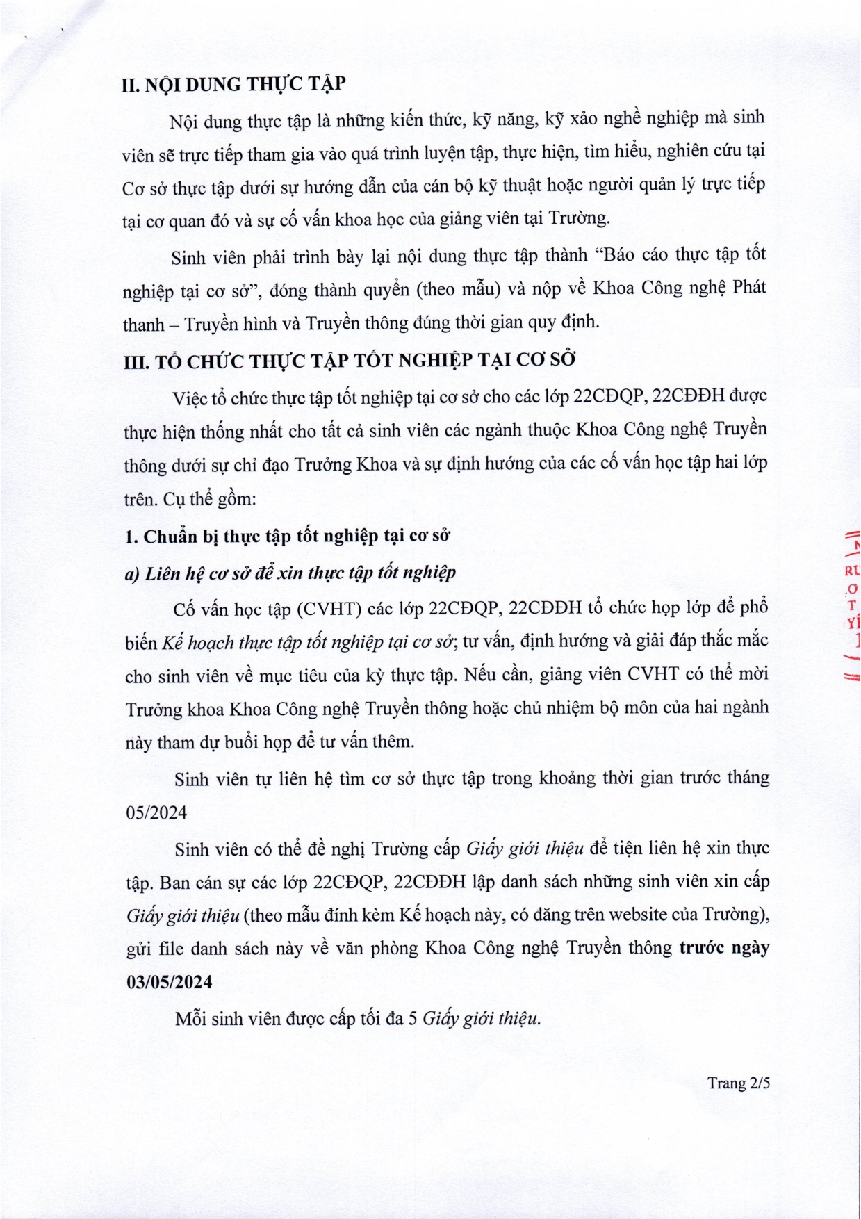 Kế hoạch thực tập tốt nghiệp tại cơ sở lớp 23CĐĐH, 23CĐQP