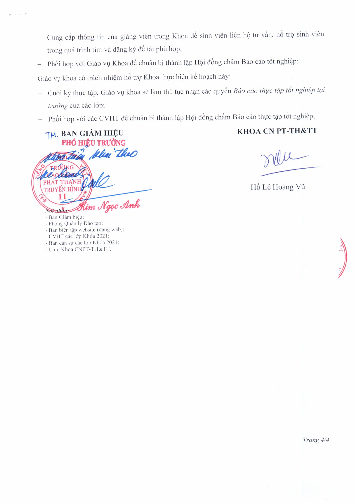Kế hoạch thực tập tốt nghiệp tại trường lớp 21CĐQP, 21CĐĐH