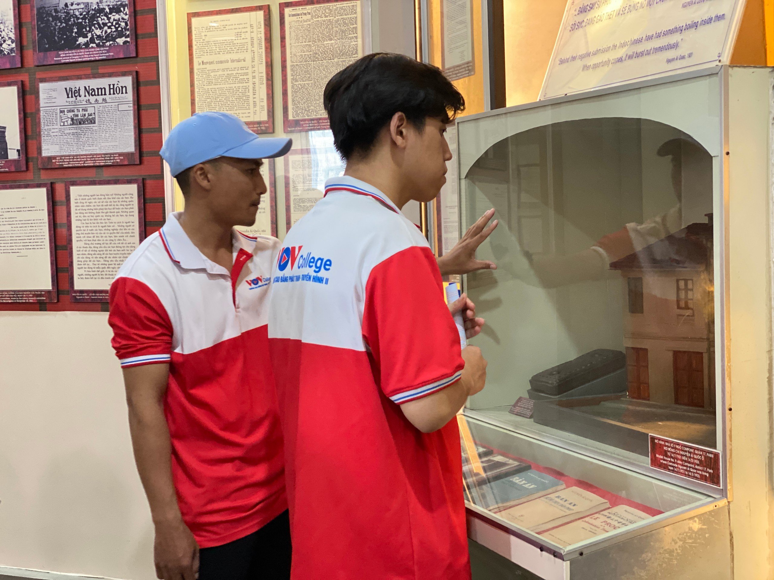 Nhóm sinh viên trường Cao đẳng Phát thanh - Truyền hình II tham quan Bảo tàng Hồ Chí Minh.