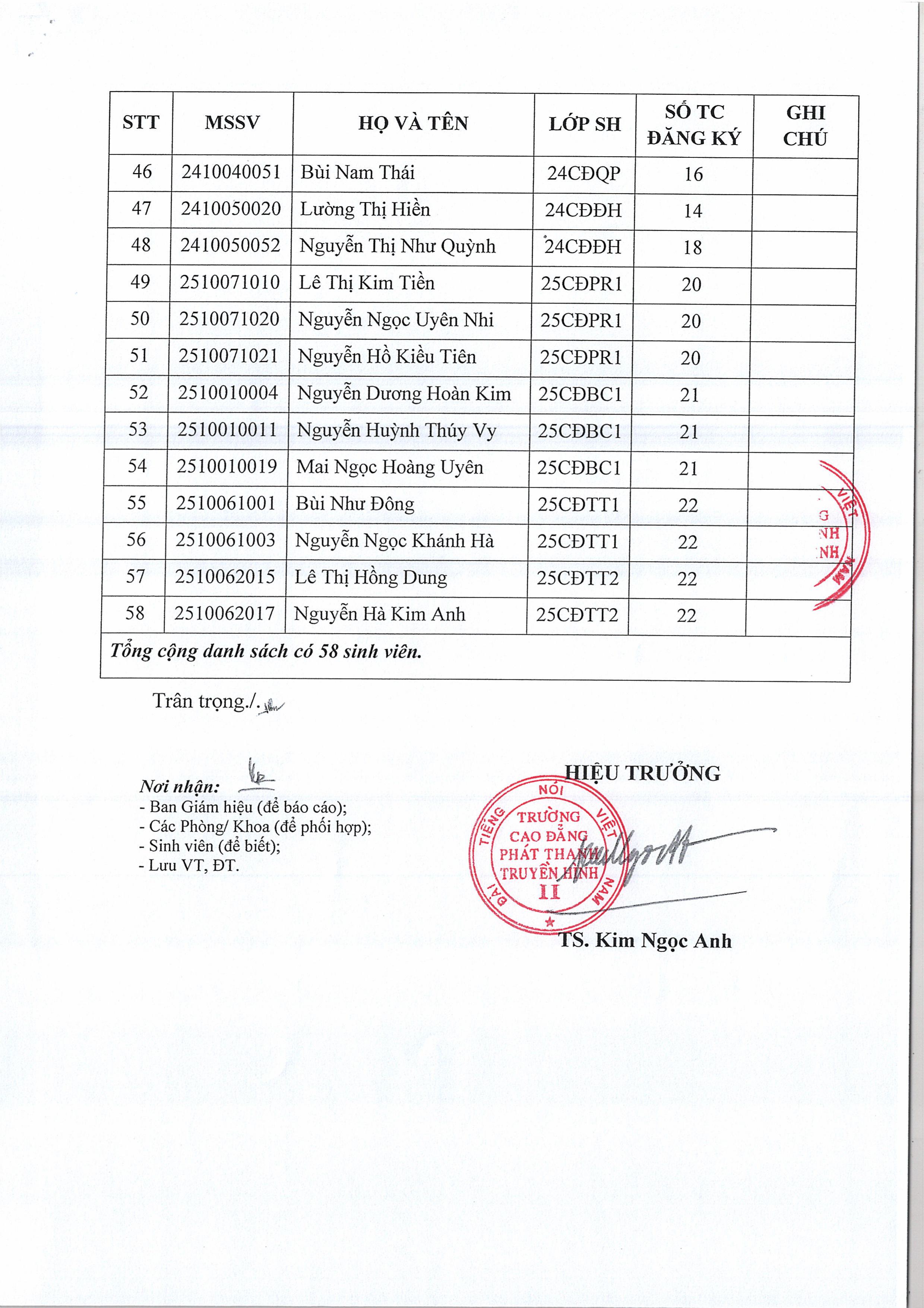 DANH SÁCH SINH VIÊN ĐƯỢC XÉT CHUYỂN ĐIỂM/ MIỄN HỌC NĂM 2025