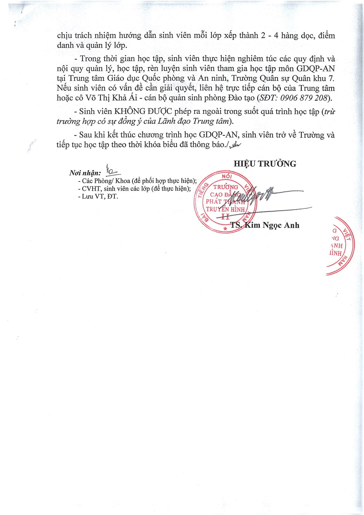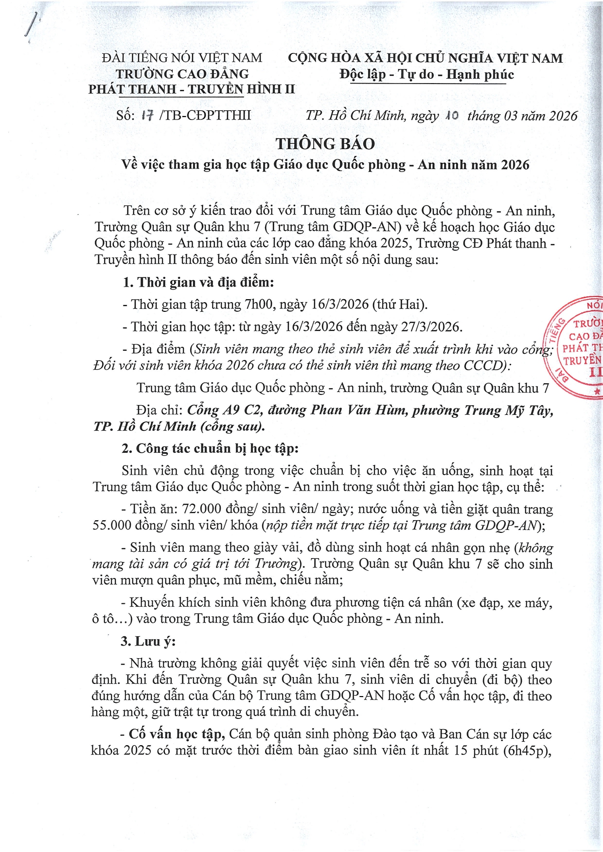 Thông báo về việc tham gia học tập Giáo dục Quốc phòng - An ninh năm 2026